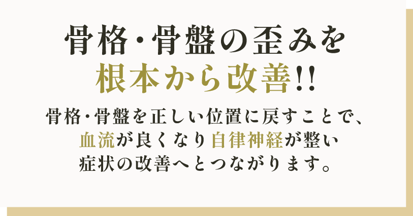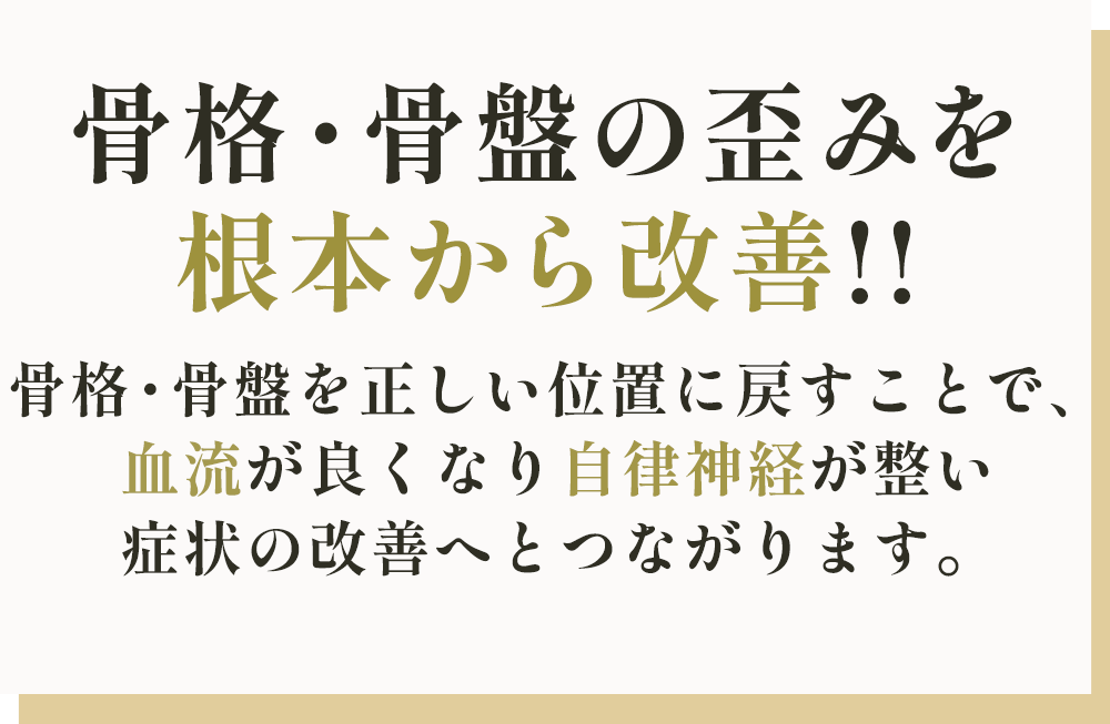 そのため、症状を根本から改善する国家資格者が20万人以上の症状改善経験から最適な骨格矯正編み出し、症状を改善してきました。